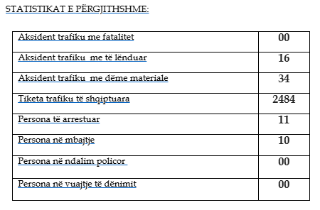 Sipas raportit të Policisë së Kosovës, gjatë 24 orëve të fundit janë shqiptuar 2,484 tiketa trafiku. Gjatë kësaj periudhe janë regjistruar 16 aksidente me të lënduar dhe 34 aksidente të tjera vetëm me dëme materiale.